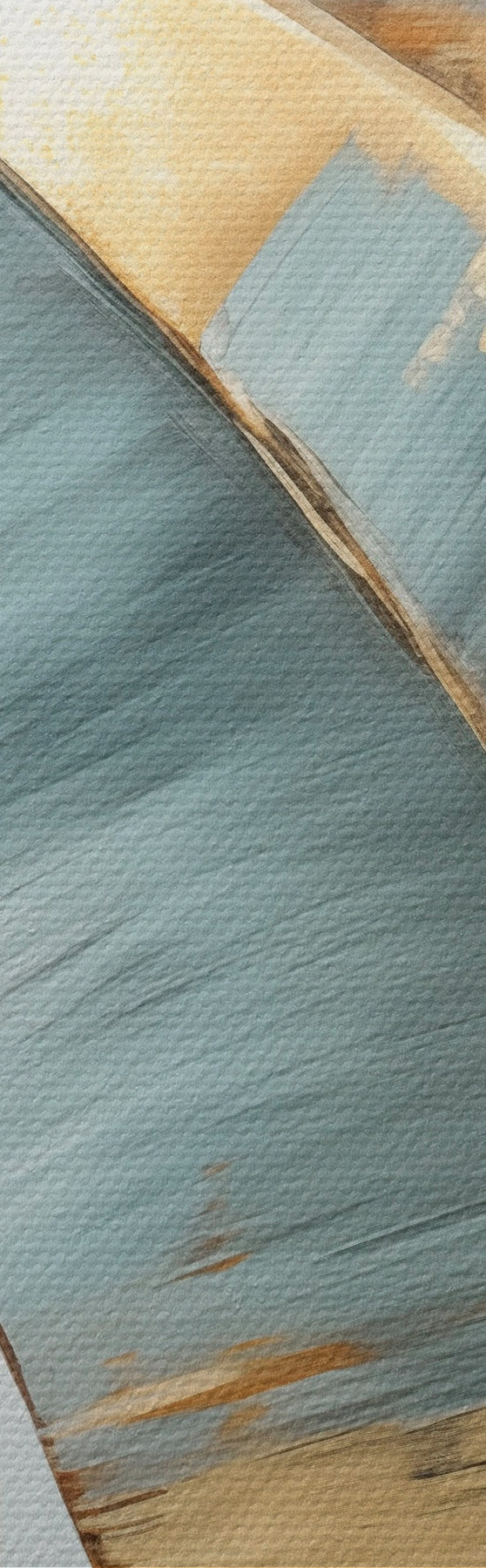 Tableau Un ensemble de feuilles de bananier bleues, grises et jaunes avec des coups de pinceau visibles, sur un fond blanc abstrait Nr m00645