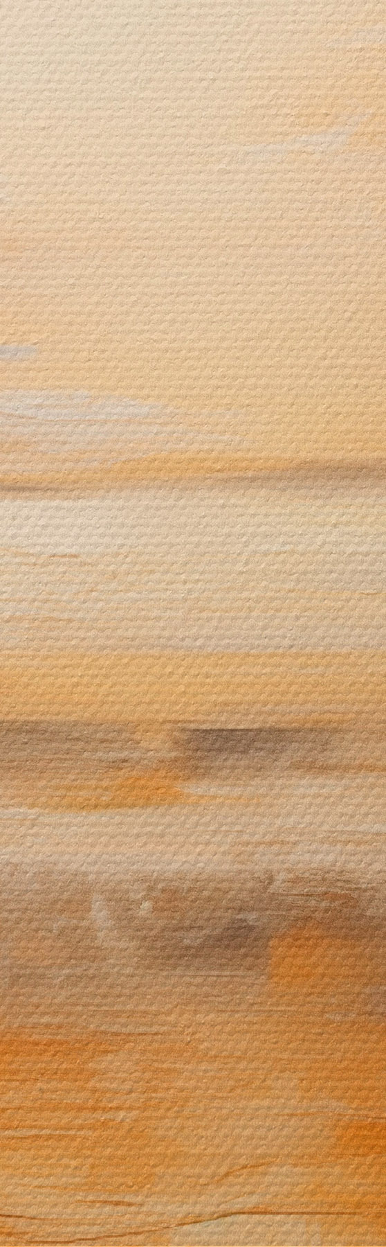 Tableau Peinture abstraite d'un paysage de plage avec un océan calme, du sable orange et un ciel nuageux avec du soleil m00653