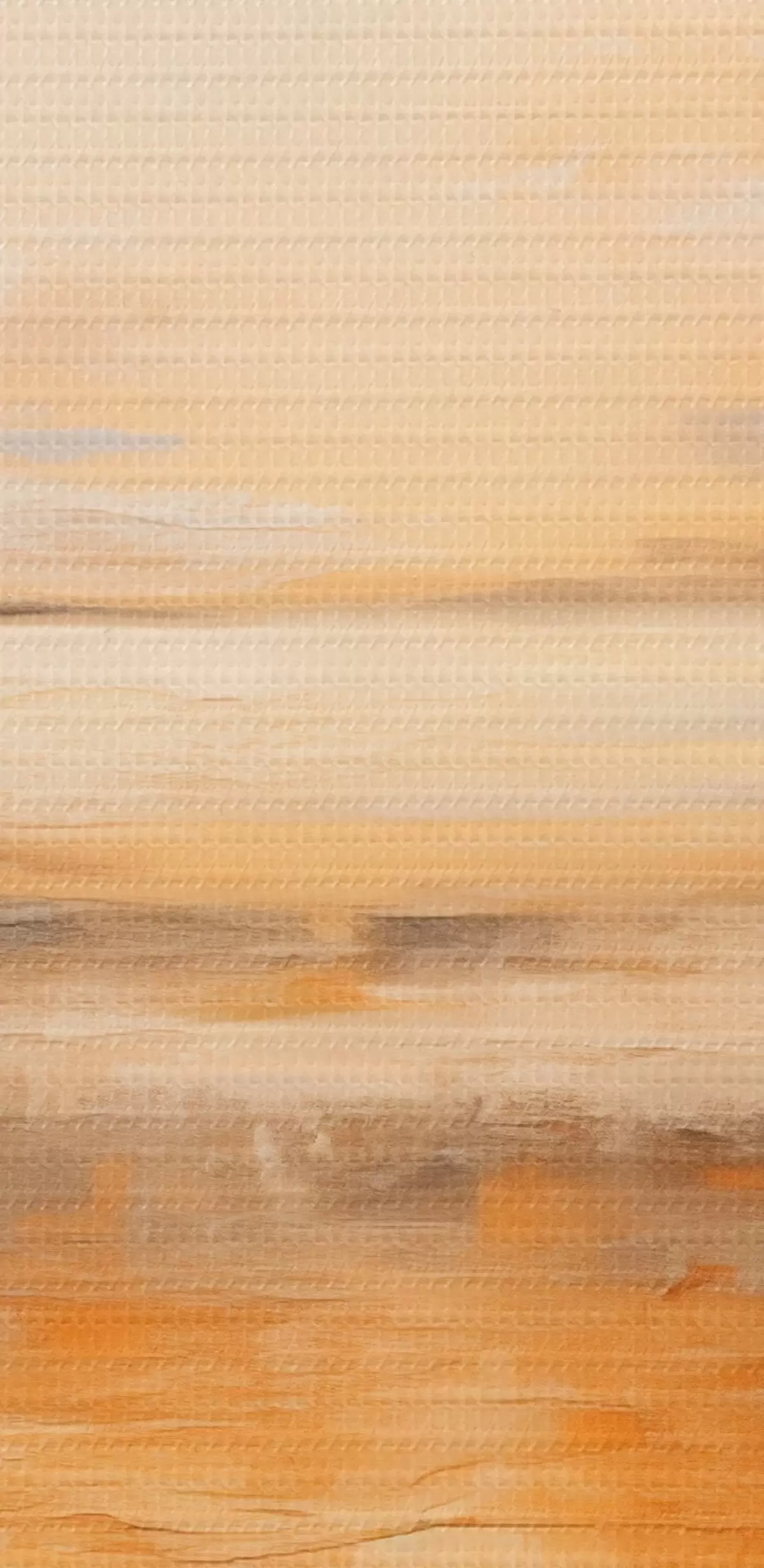 Tableau Peinture abstraite d'un paysage de plage avec un océan calme, du sable orange et un ciel nuageux avec du soleil Nr m00653