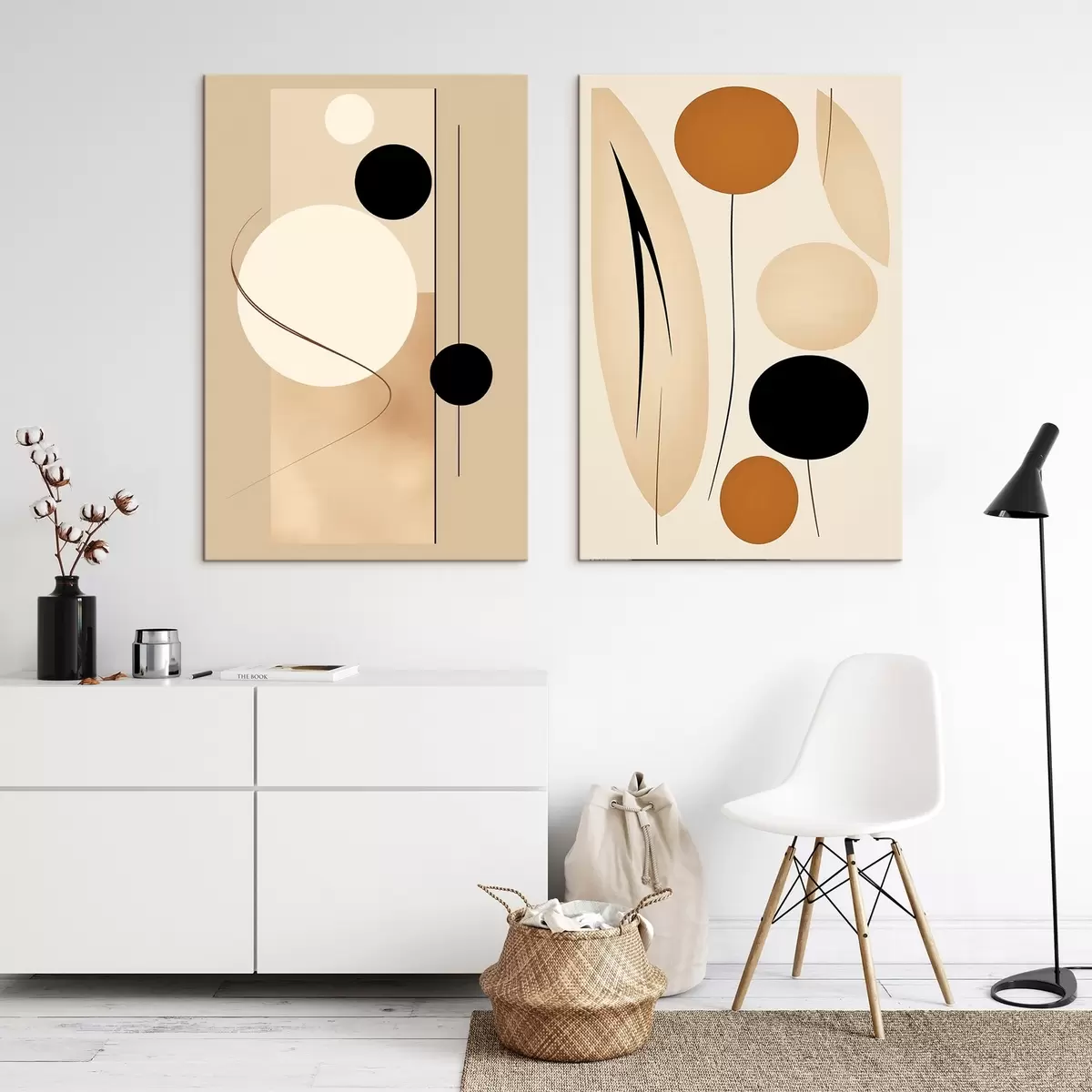 Tableau Cercles géométriques minimalistes dans les tons beige et noir Nr m00685