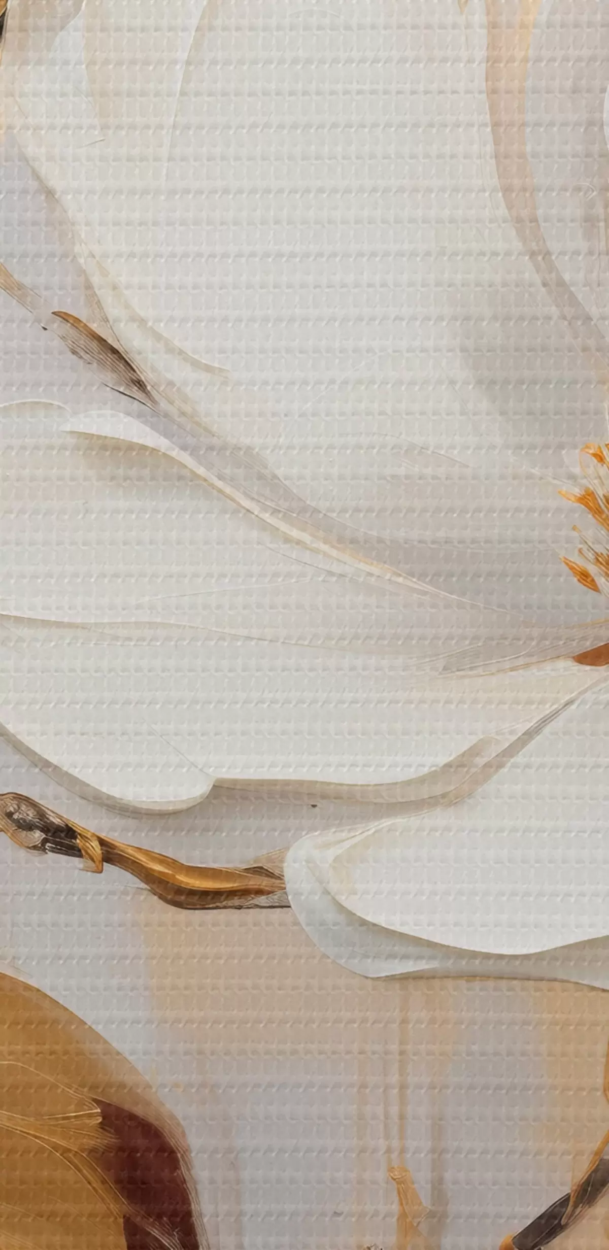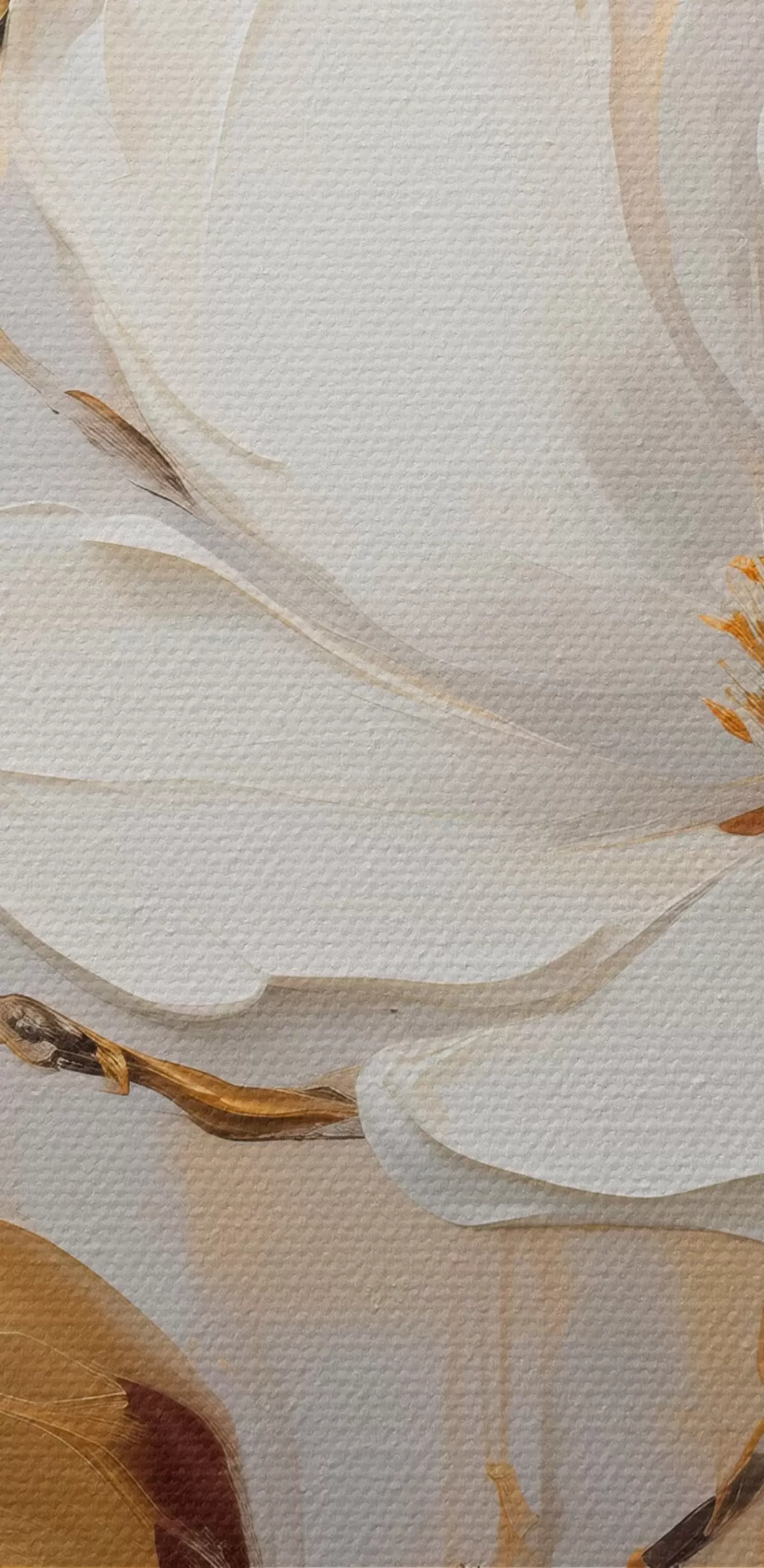 Tableau Deux fleurs blanches avec des feuilles jaune-orange sur un fond clair Nr m00687