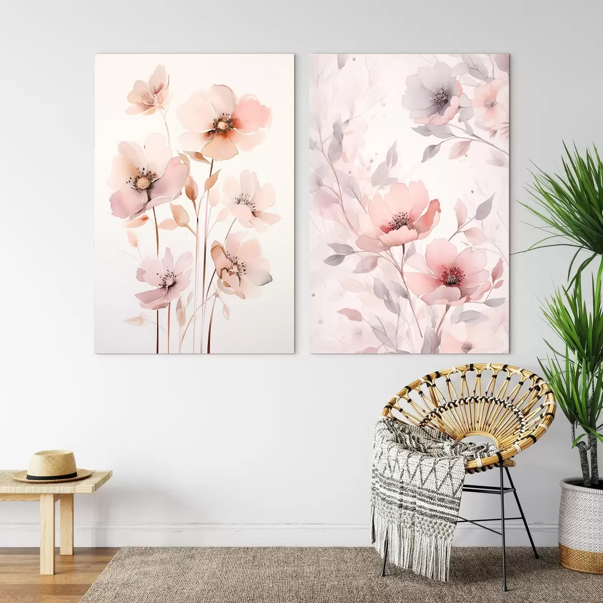 Tableau Fleurs roses aquarelles sur tiges fines Nr m00690
