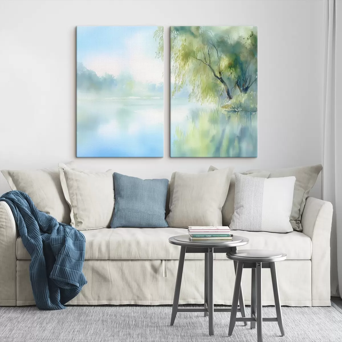 Tableau saule au bord du lac, style aquarelle m00702