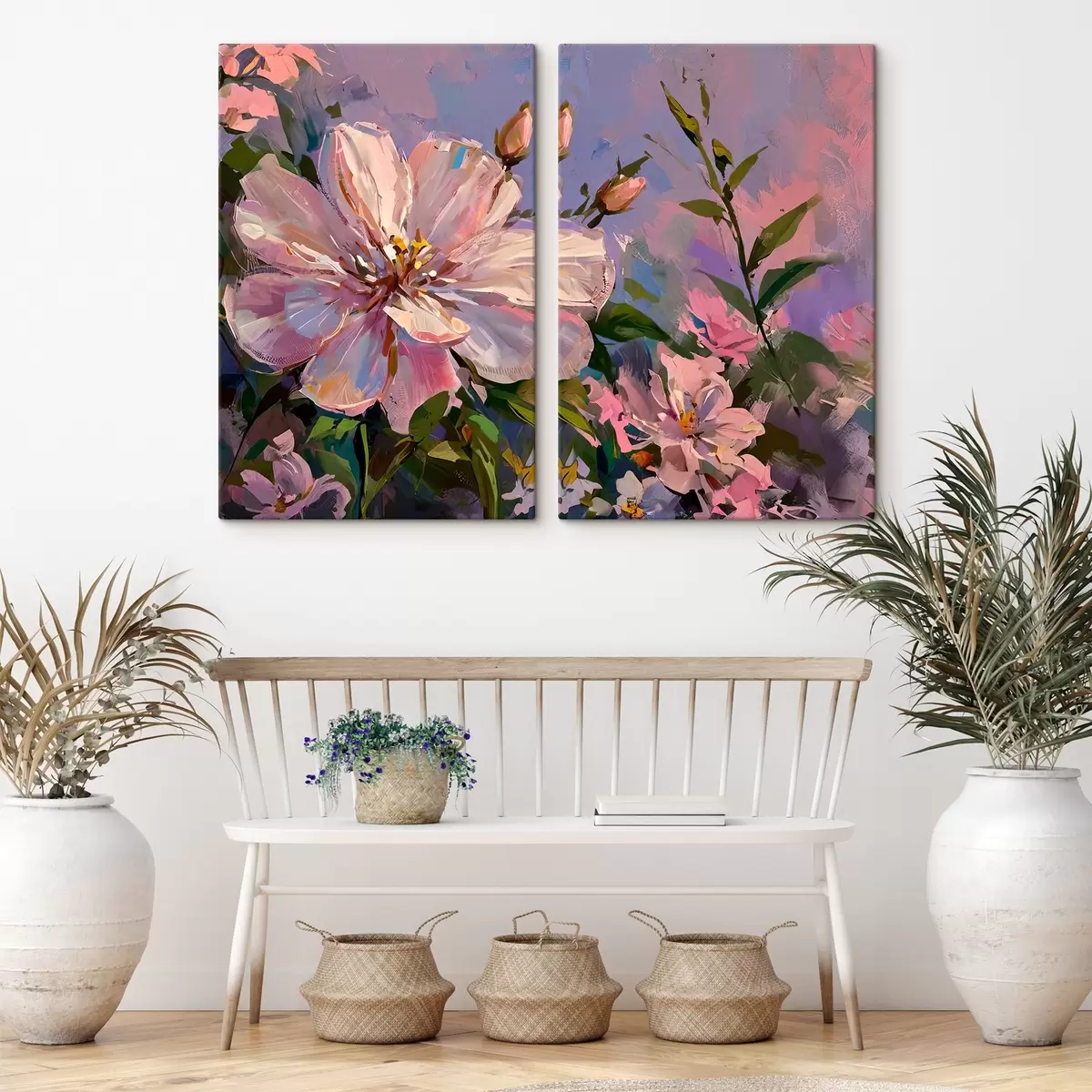 Tableau fleurs roses dans le style de la peinture à l'huile m00706