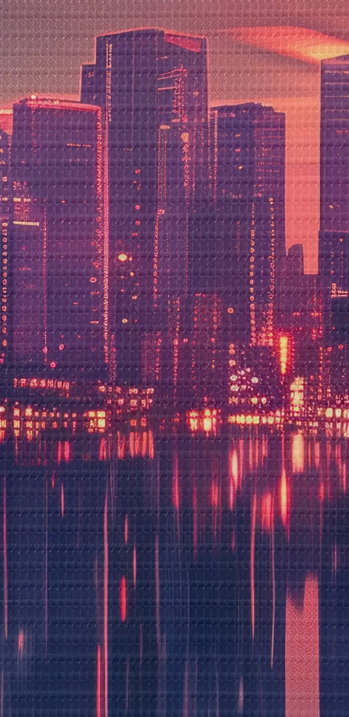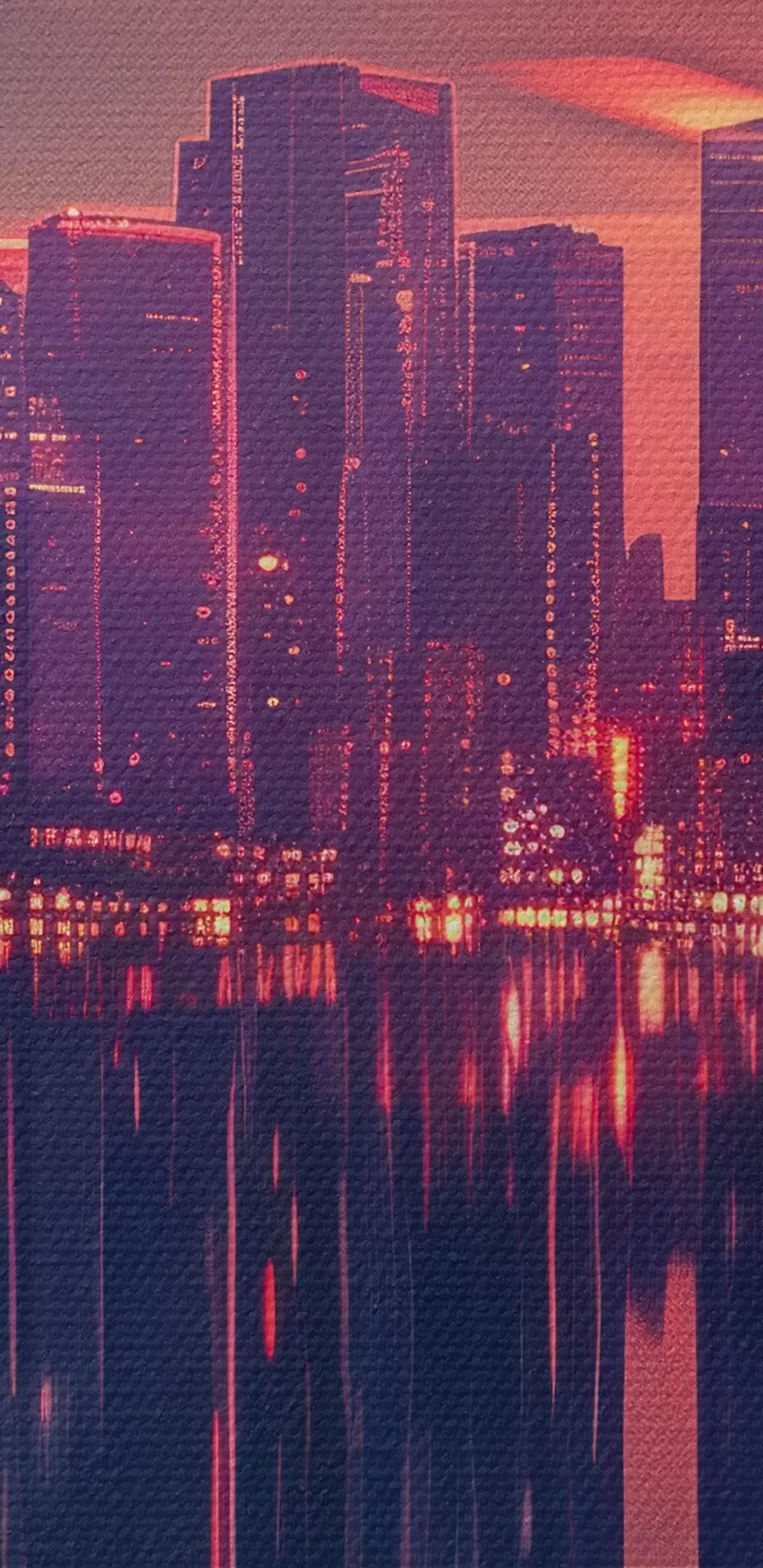 Tableau Coucher de soleil romantique avec une ville moderne en arrière-plan Nr m00784