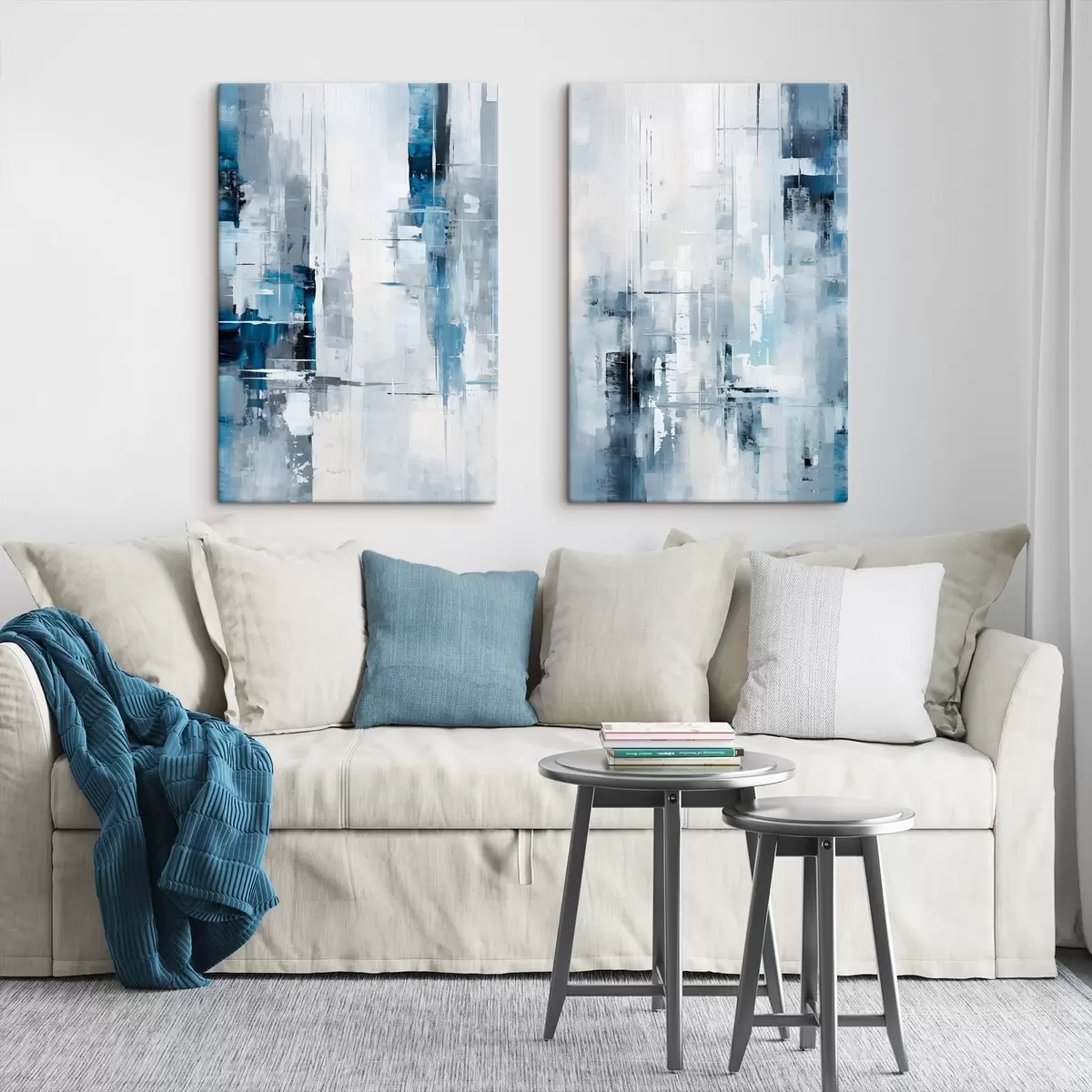 Tableau Imitation de peinture abstraite avec des couleurs bleues, grises et blanches, des lignes verticales et des formes géométriques Nr m00819