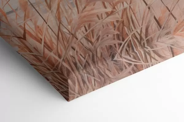Tableau Herbe de la pampa avec une palette de couleurs orange pastel, un ciel rose pâle, un paysage paisible m00823