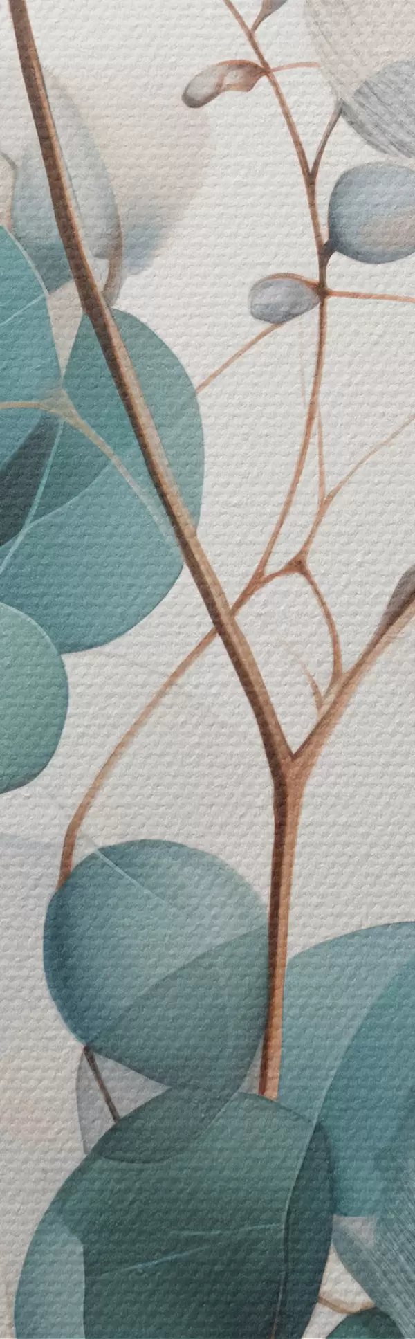 Tableau Branche d'eucalyptus avec des feuilles bleues et des fleurs blanches, fond clair Nr m00829