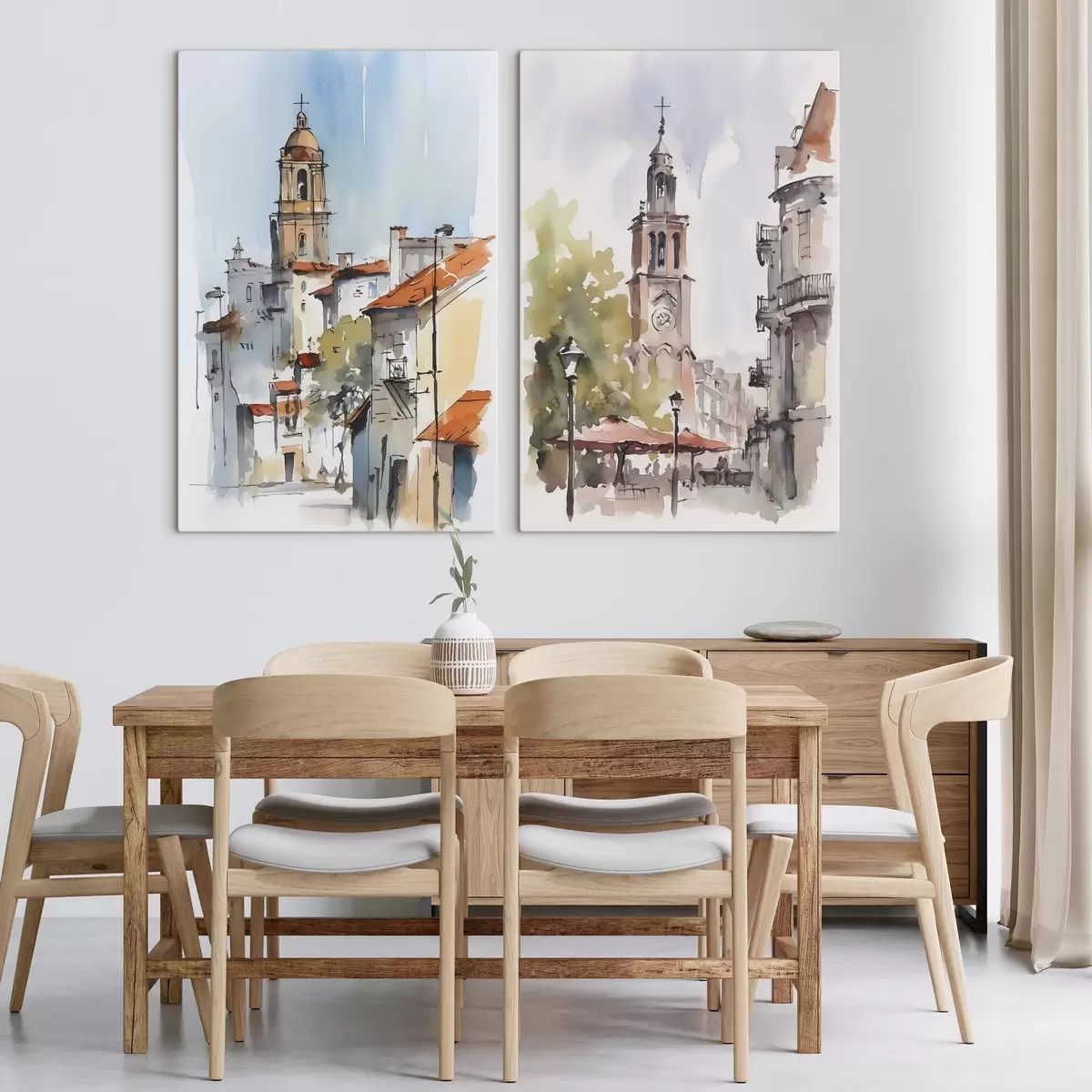 Tableau Aquarelle imitant un paysage urbain Nr m00832