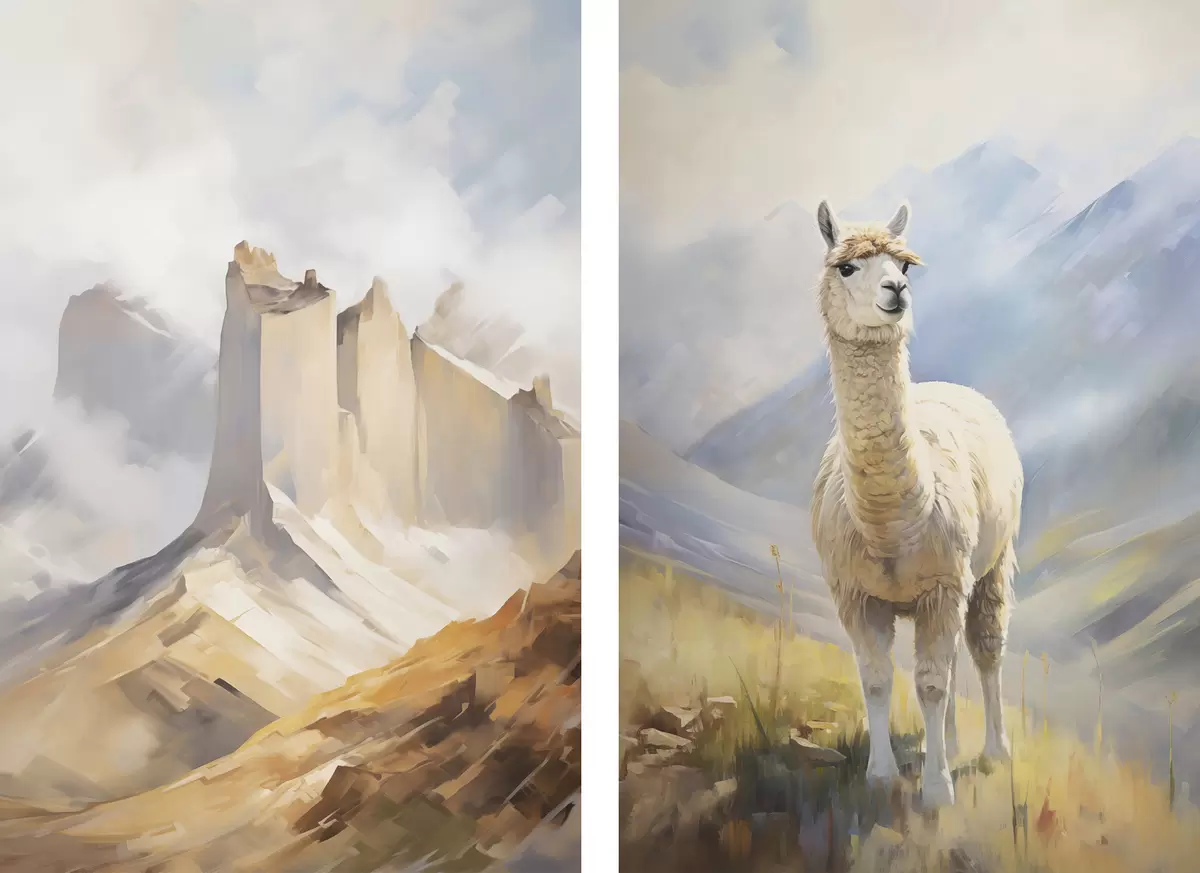 Tableau Montagnes Rocheuses et lama Nr m00837