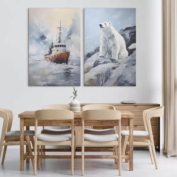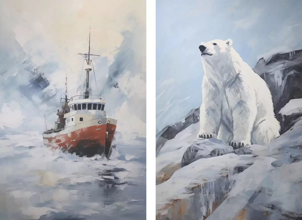 Tableau Un brise-glace et un ours parmi les glaces flottantes Nr m00839