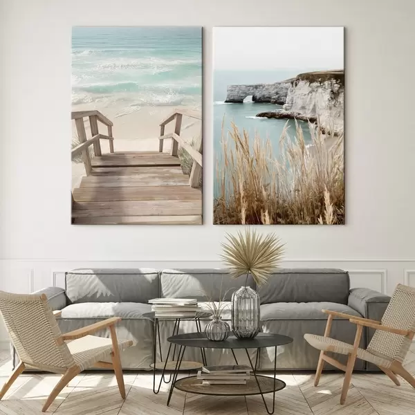 Tableau Falaises côtières et herbes sèches au bord d'une mer turquoise Nr m00875