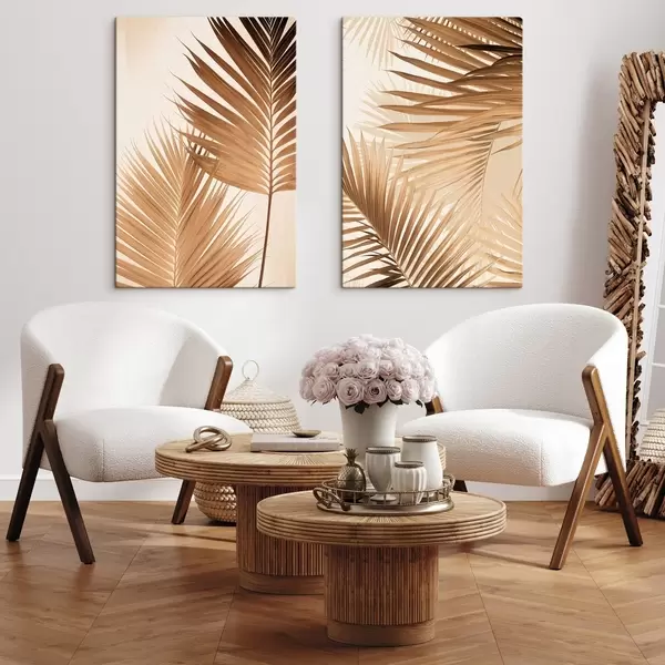 Tableau Feuilles de palmier dans des tons bruns, fond neutre, style minimaliste, éclairage naturel, ambiance tropicale Nr m00880