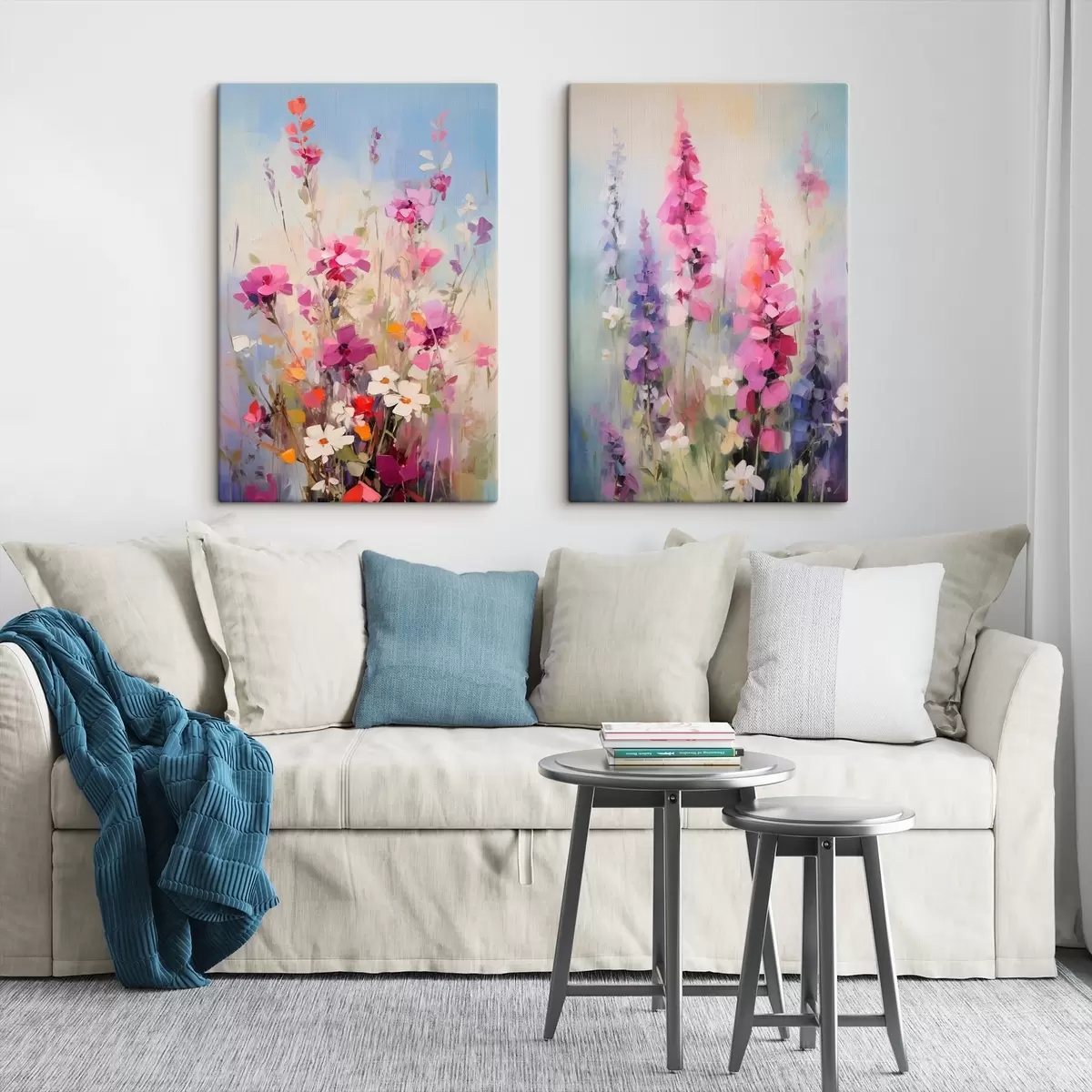 Tableau Fleurs éclatantes avec des marguerites blanches dans un champ, coups de pinceau doux, couleurs pastel, style impressionniste m00882