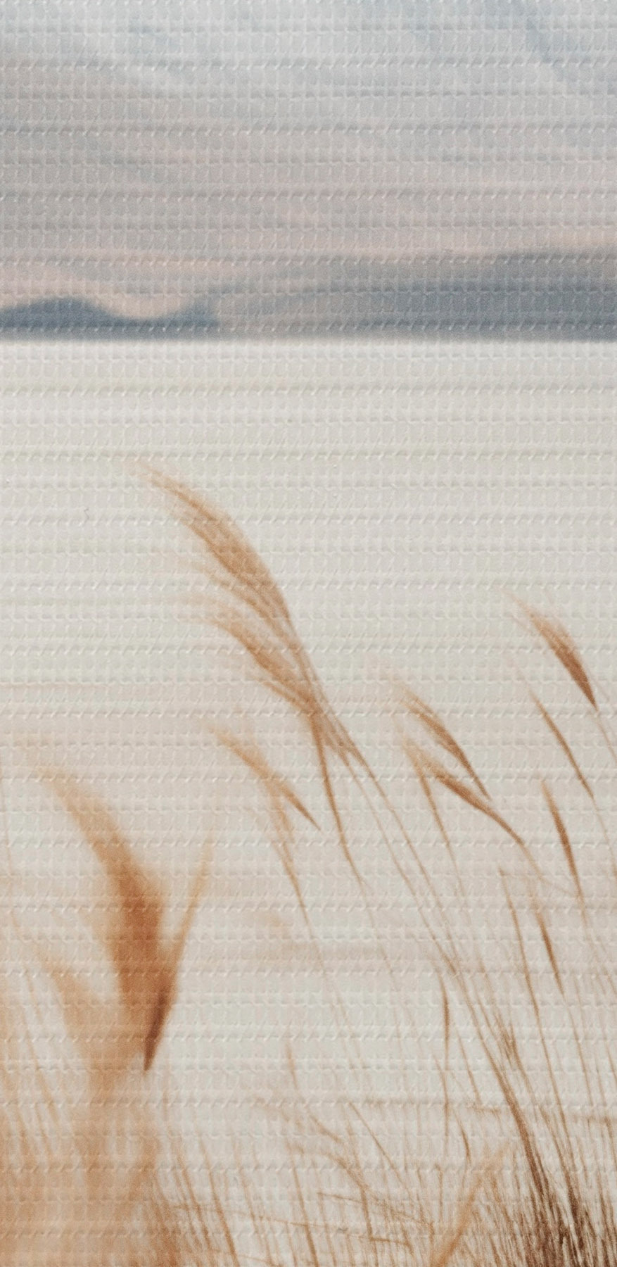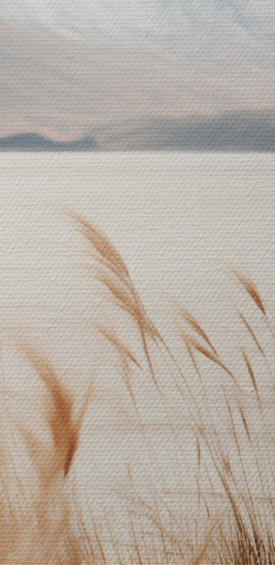 Tableau Herbe de la pampa avec un lac et des montagnes en arrière-plan, éclairage tamisé, couleurs douces, style naturaliste Nr m00884