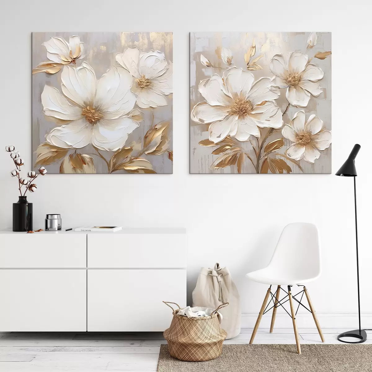 Tableau Diptyque avec de grandes fleurs aux couleurs chaudes et claires Nr m00927