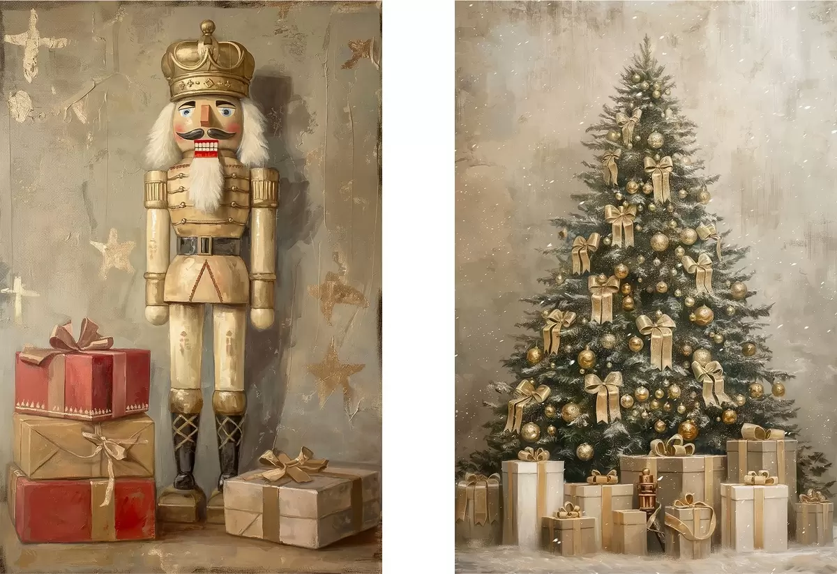 Tableau Casse-Noisette et sapin de Noël avec des cadeaux Nr m00957