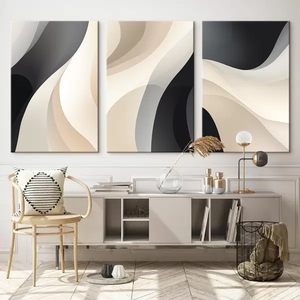 Tableau Courbes fluides minimalistes dans les tons crème, taupe et noir m00962