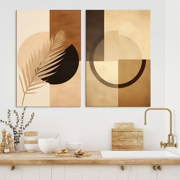 Tableau Géométrie en terre cuite et beige avec motif de feuilles de palmier m00968