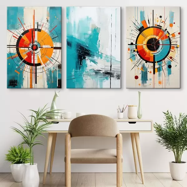 Tableau Abstrait radial avec éclats bleu sarcelle et orange m00973