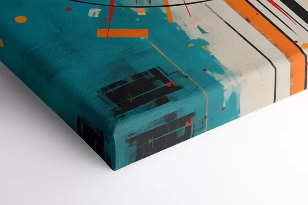 Tableau Abstrait radial avec éclats bleu sarcelle et orange Nr m00973