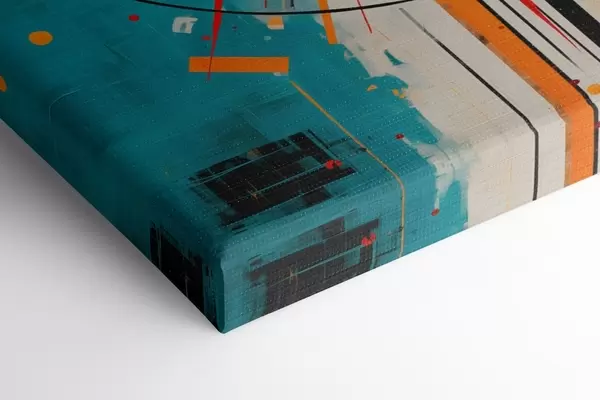 Tableau Abstrait radial avec éclats bleu sarcelle et orange Nr m00973
