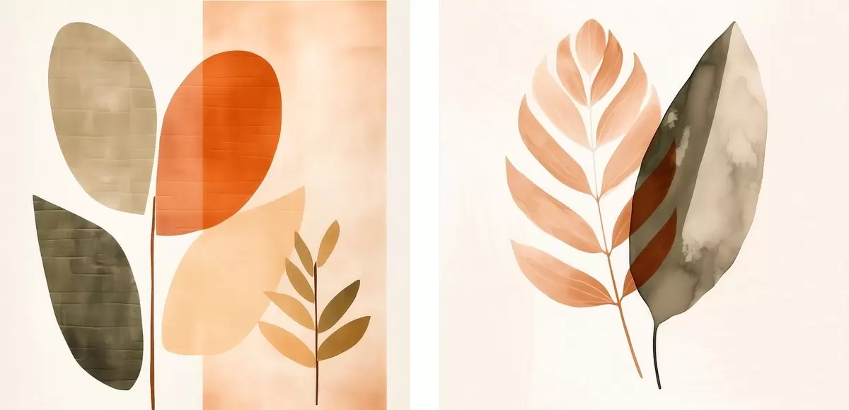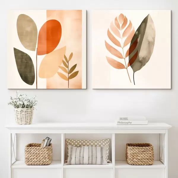 Tableau Diptyque avec motifs botaniques dans une palette pastel m00983