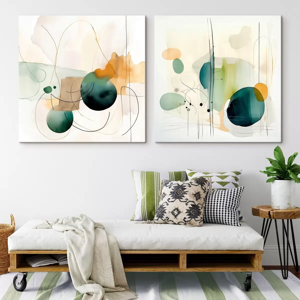 Tableau Composition abstraite en deux parties avec des taches de couleur douce Nr m00985