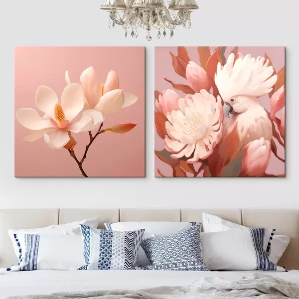 Tableau Composition florale avec un oiseau dans un style artistique illustré Nr m00994