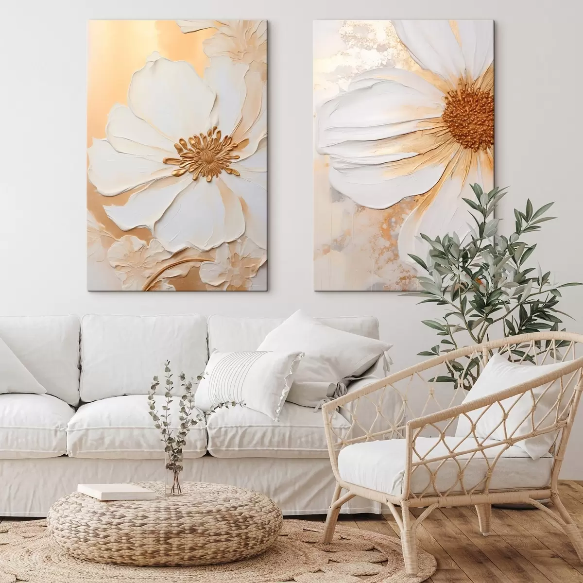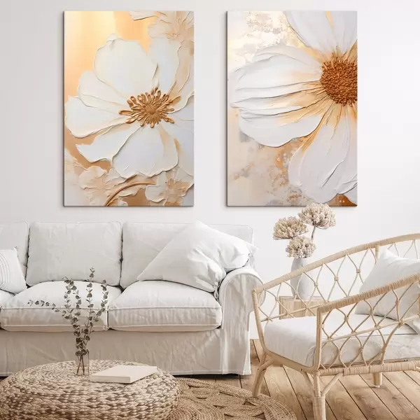 Tableau Une fleur blanche aux pétales délicats, fond abstrait texturé, élégant, art décoratif Nr m01006