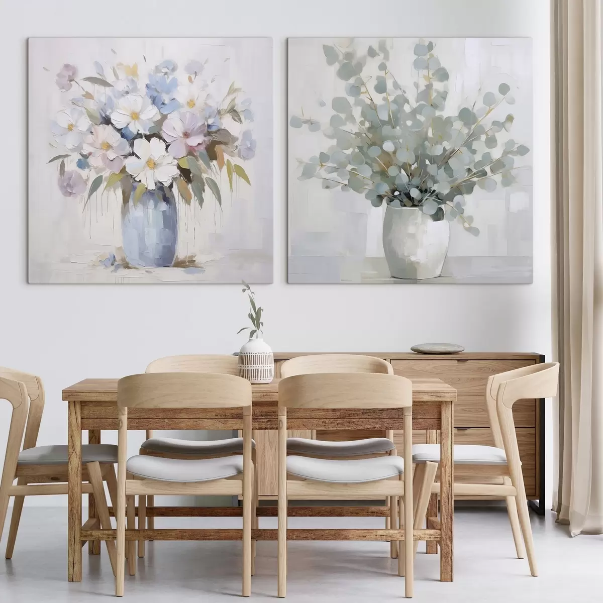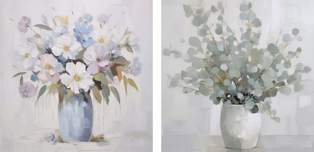 Tableau Peinture imitation fleurs et eucalyptus m01017