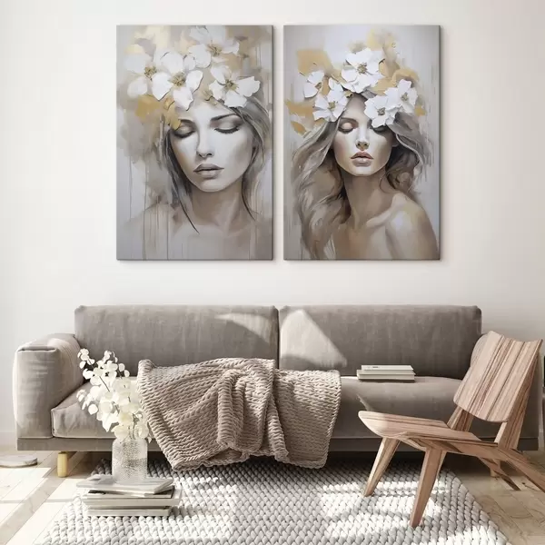 Tableau Portrait abstrait d'une jeune fille avec des fleurs, imitation d'une peinture Nr m01034