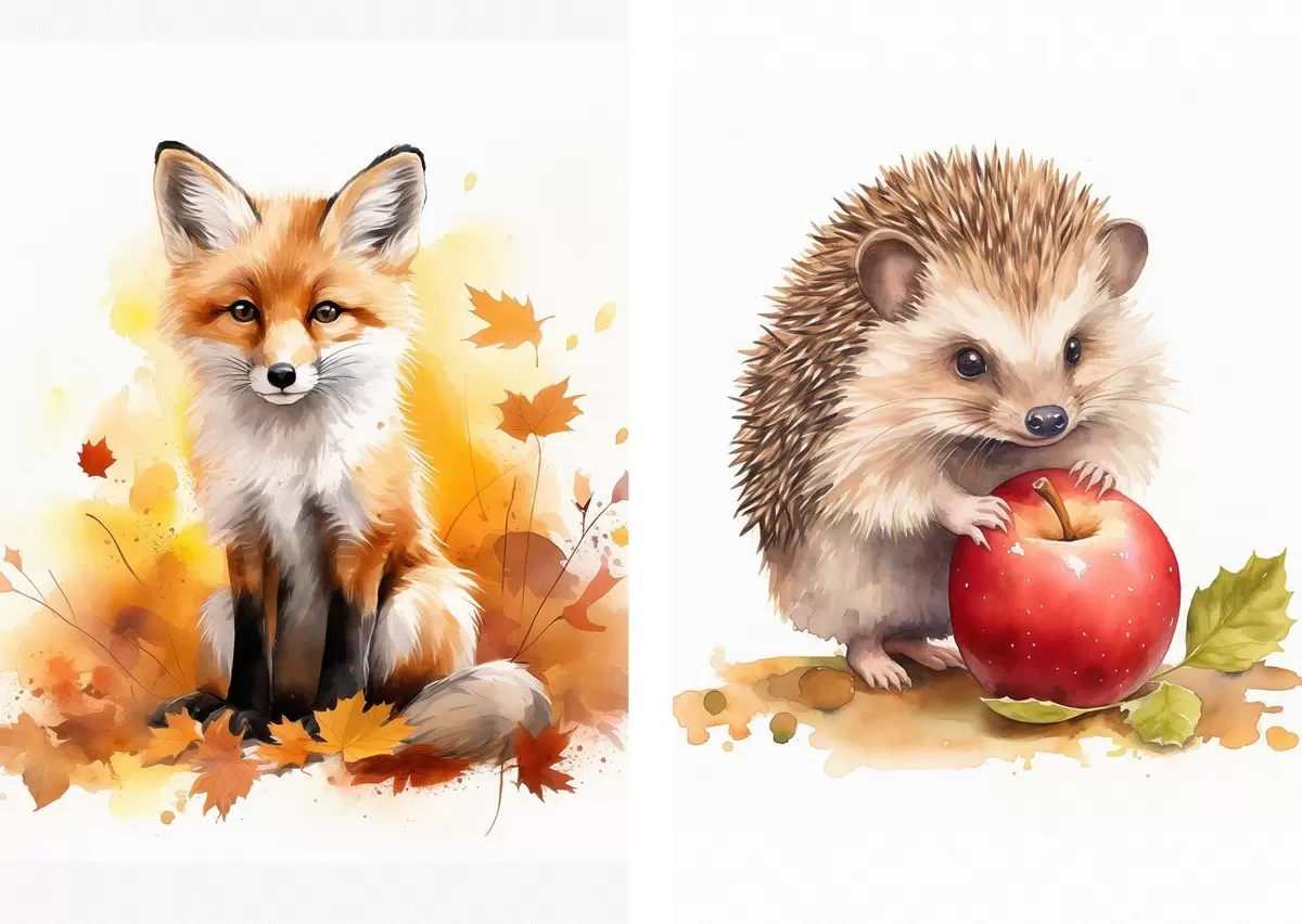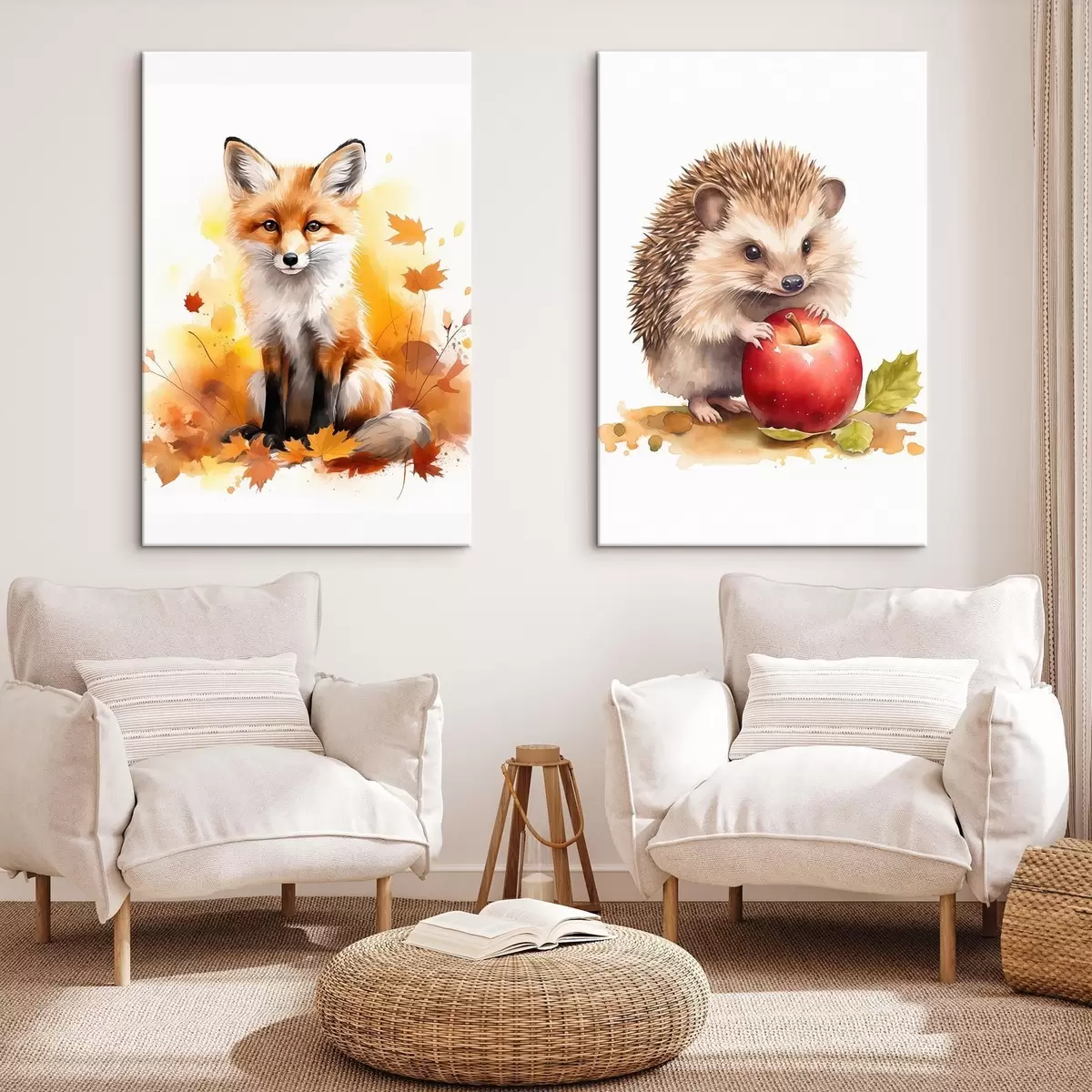 Tableau Renard et hérisson, imitation aquarelle Nr m01050
