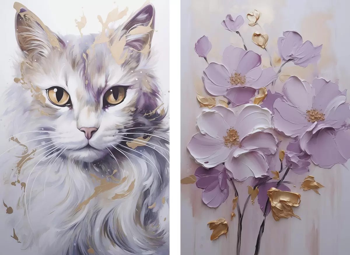 Trois types de matériaux peuvent être commandés : Economic Canvas - matériau dense et durable pour l'impression numérique, identique à la toile de peintre, surface imperméable, reproduction réaliste des détails, matériau à grain moyen. Premium Canvas - la texture ressemble à celle d'une toile de peintre (petits fils entrelacés). Reproduction douce et détaillée de l'image sur une surface mate. Eco-Premium - tissu 100 % coton de haute qualité. Grâce aux fibres naturelles de coton, le matériau est durable et résistant à l'usure. Excellente reproduction des couleurs et des détails.