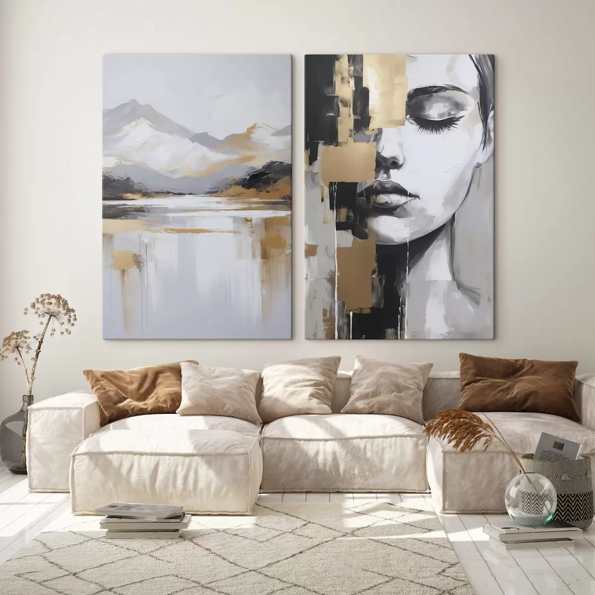 Tableau Paysage montagneux abstrait et portrait Nr m01058