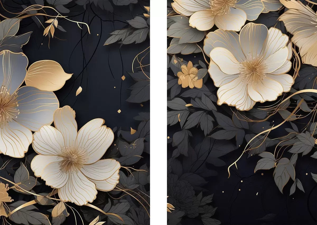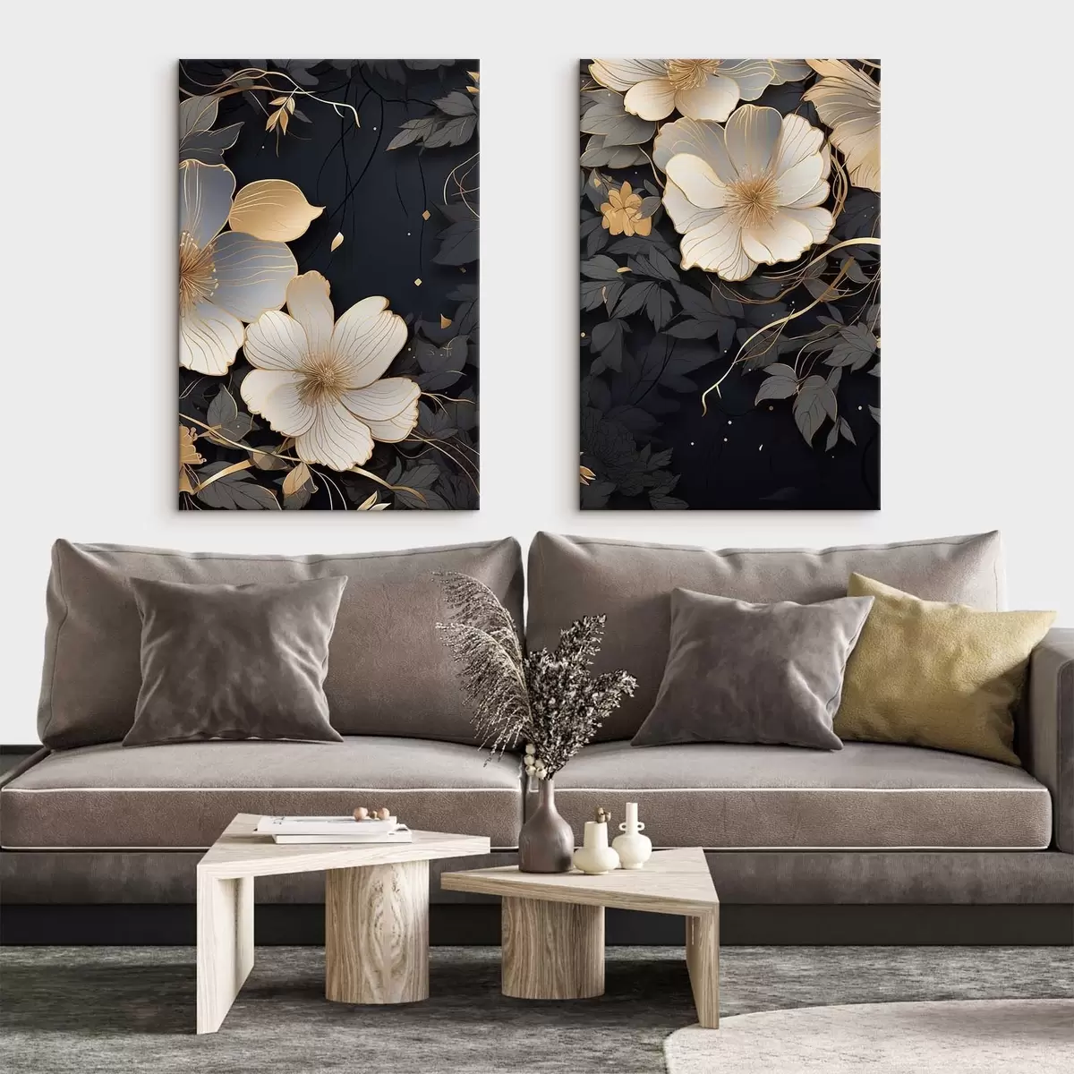 Tableau Grandes fleurs abstraites sur fond sombre m01066
