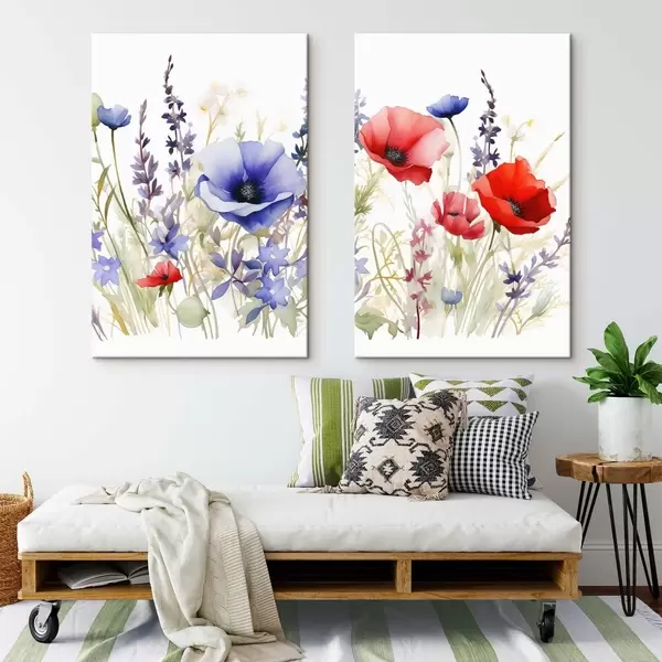 Tableau Coquelicots dans un champ, effet aquarelle m01067
