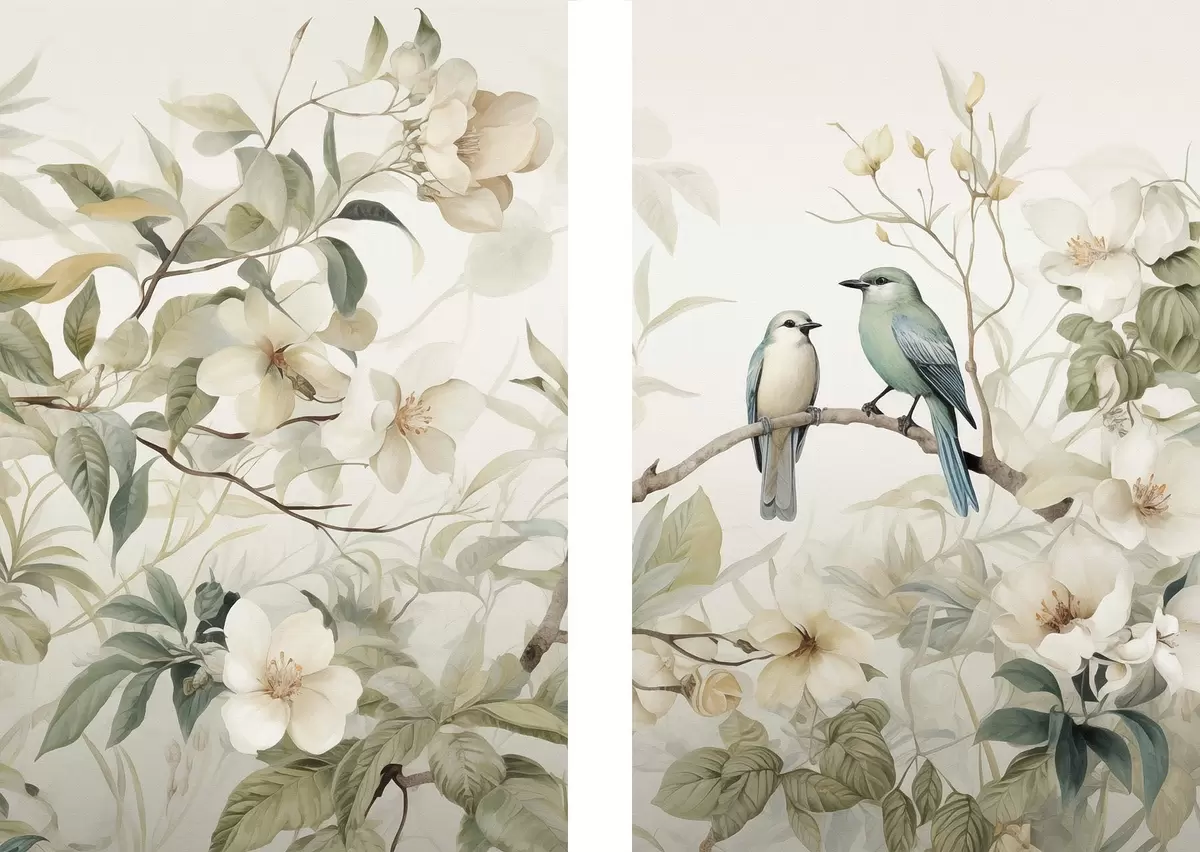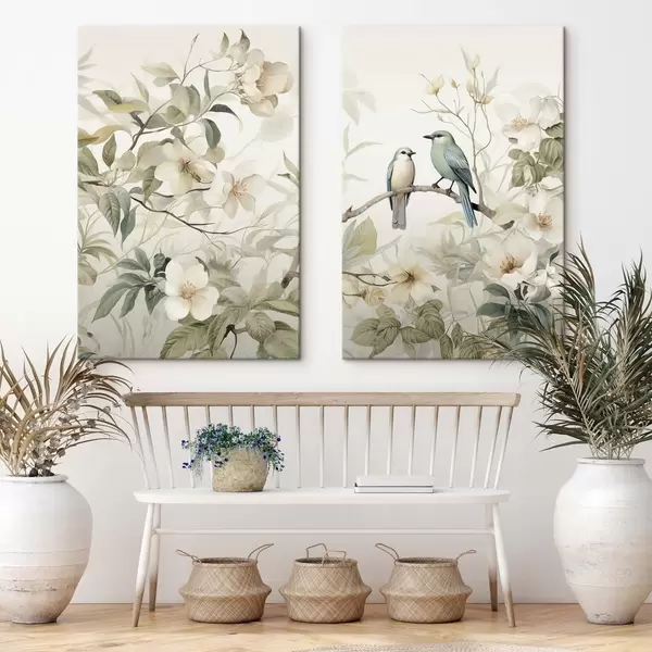 Tableau Deux oiseaux sur des branches m01071