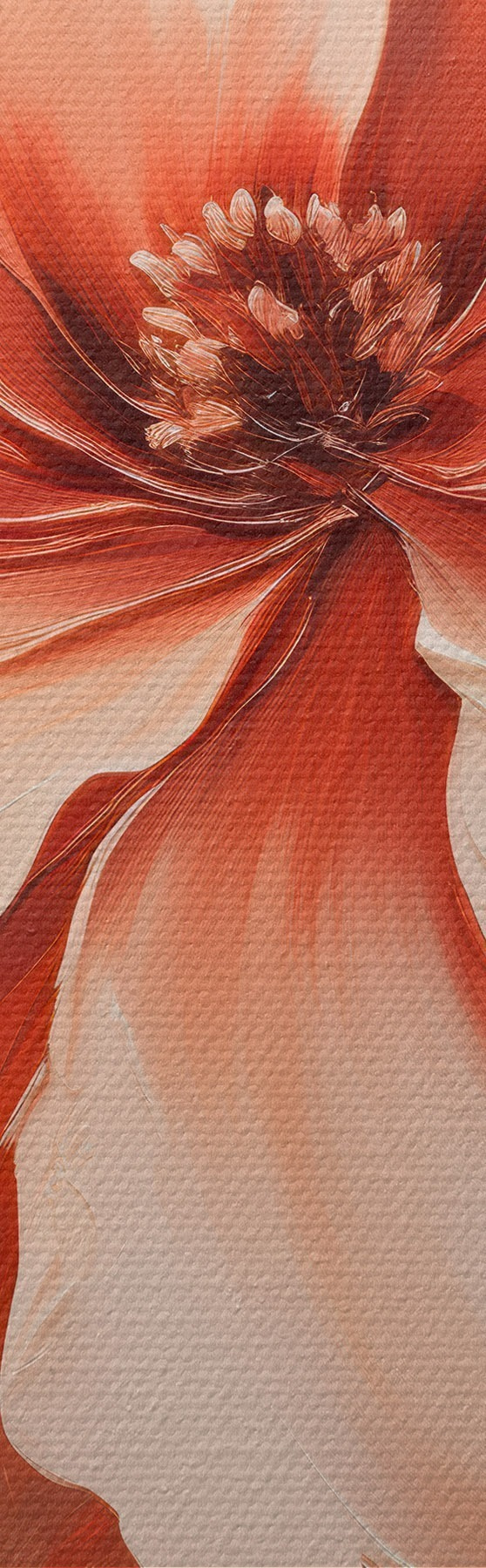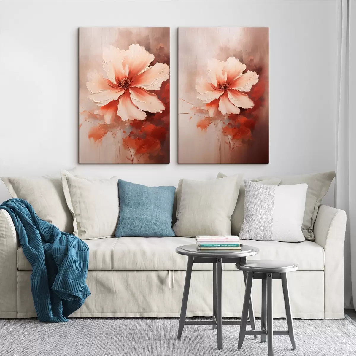 Tableau Composition florale : pétales blancs et crème, accents corail et fond brumeux délicat. Nr m01088