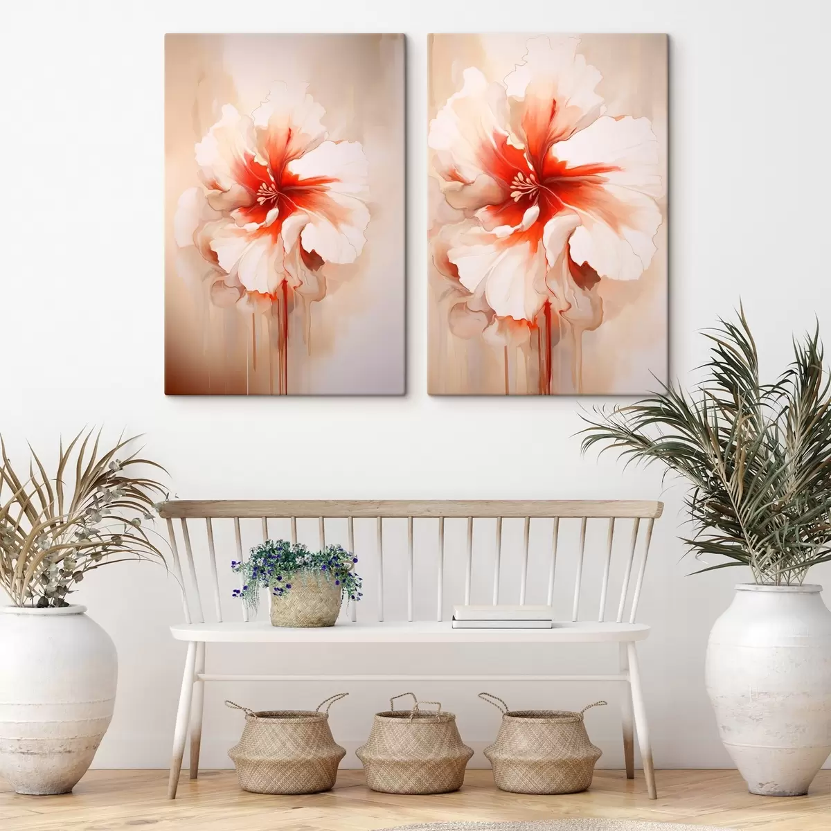 Tableau Pétales de corail blanc sur fond abstrait, composition apaisante m01089