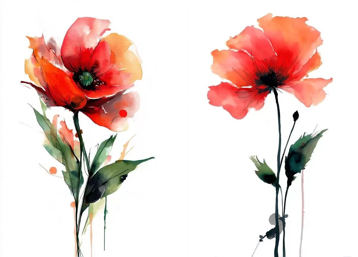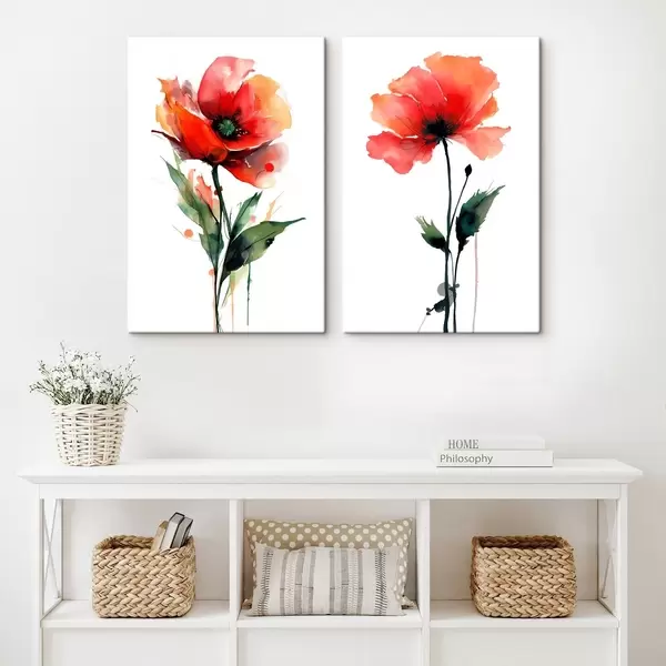 Tableau Composition avec des coquelicots rouges sur fond blanc, style aquarelle Nr m01100