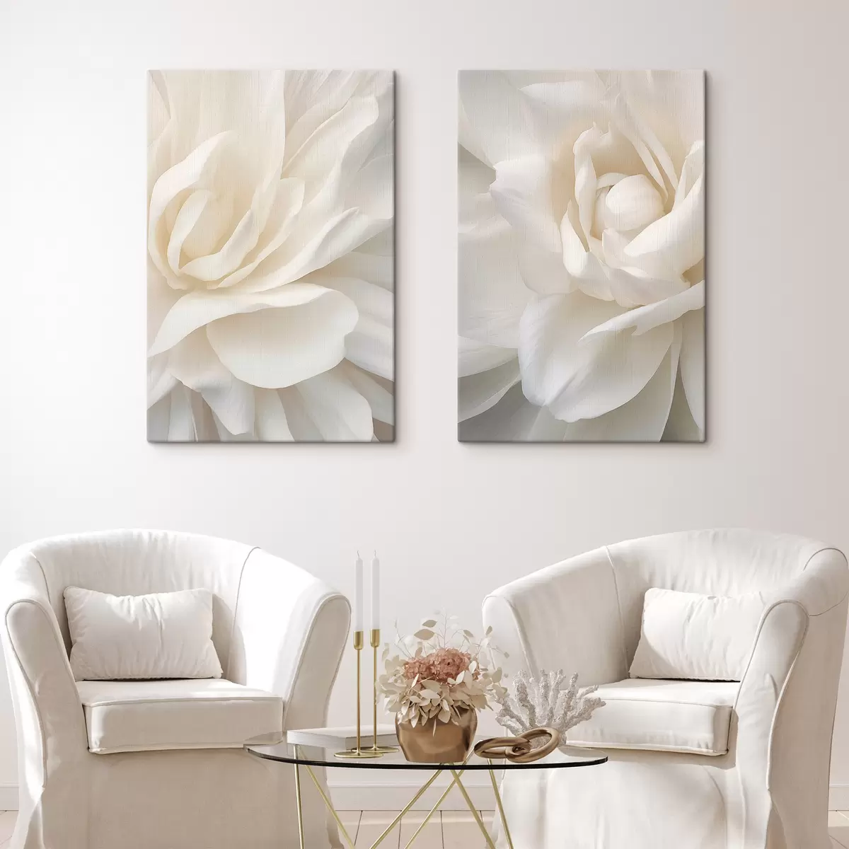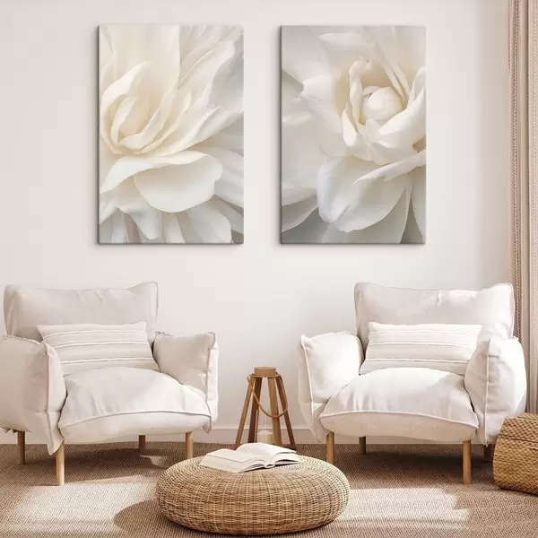 Tableau Fleur blanche abstraite aux pétales délicats et superposés, art minimaliste m01120