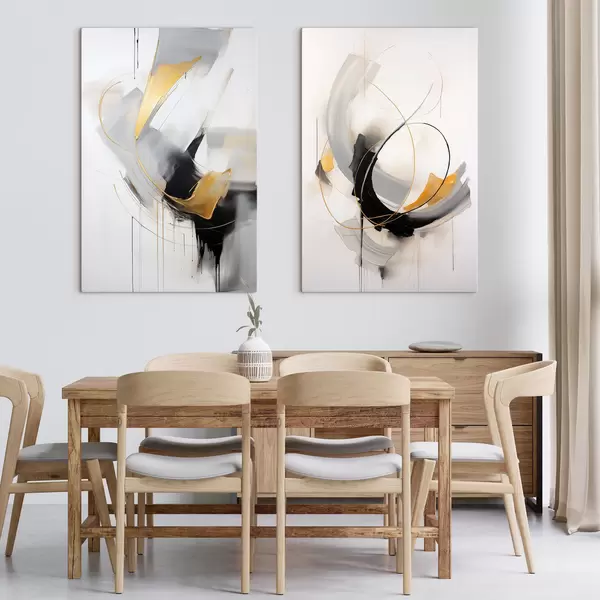 Tableau Peinture abstraite avec des touches de jaune, noir et blanc, lignes dynamiques m01125