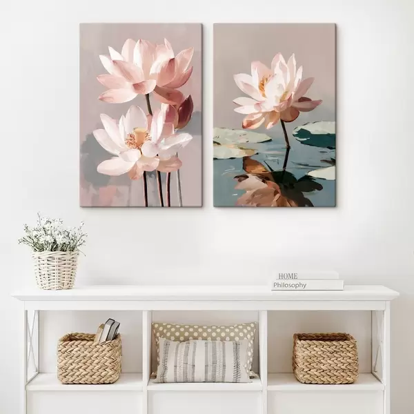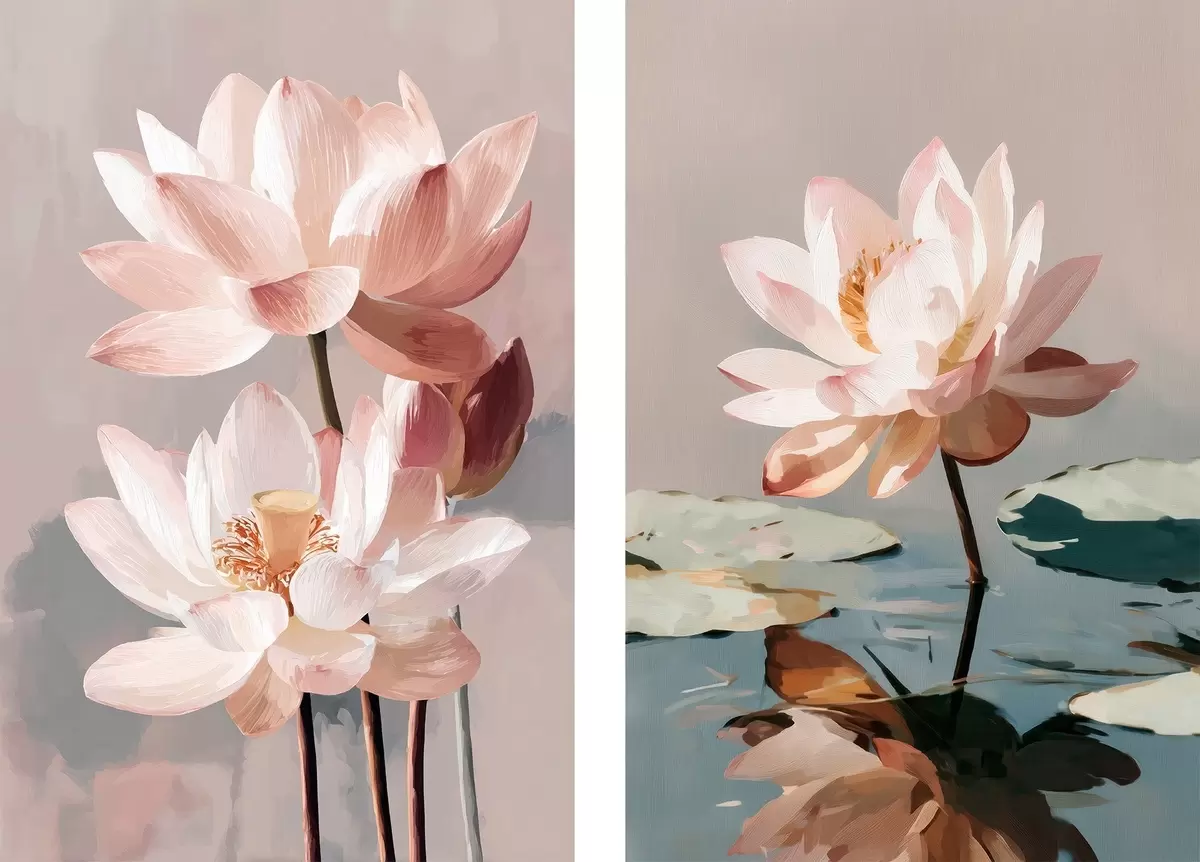 Tableau Lotus roses délicats dans un style de peinture numérique moderne m01152