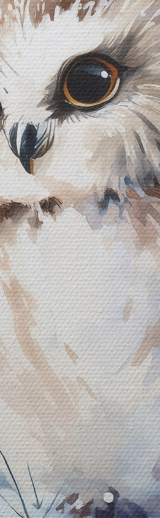 Tableau Jolie chouette sur une branche de pin enneigée, peinte à l'aquarelle Nr m01168