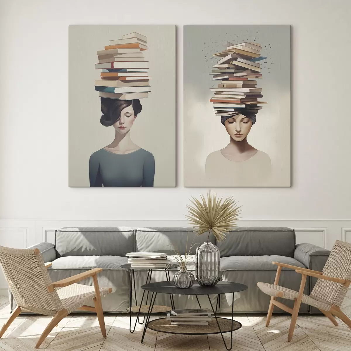 Tableau Portrait d'une jeune fille avec des livres Nr m01184