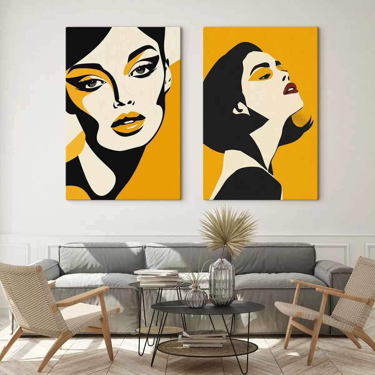 Tableau Portrait féminin dans les tons jaunes m01229