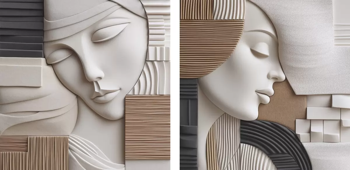 Trois types de matériaux peuvent être commandés : Economic Canvas - matériau dense et durable pour l'impression numérique, identique à la toile de peintre, surface imperméable, reproduction réaliste des détails, matériau à grain moyen. Premium Canvas - la texture ressemble à celle d'une toile de peintre (petits fils entrelacés). Reproduction douce et détaillée de l'image sur une surface mate. Eco-Premium - tissu 100 % coton de haute qualité. Grâce aux fibres naturelles de coton, le matériau est durable et résistant à l'usure. Excellente reproduction des couleurs et des détails.