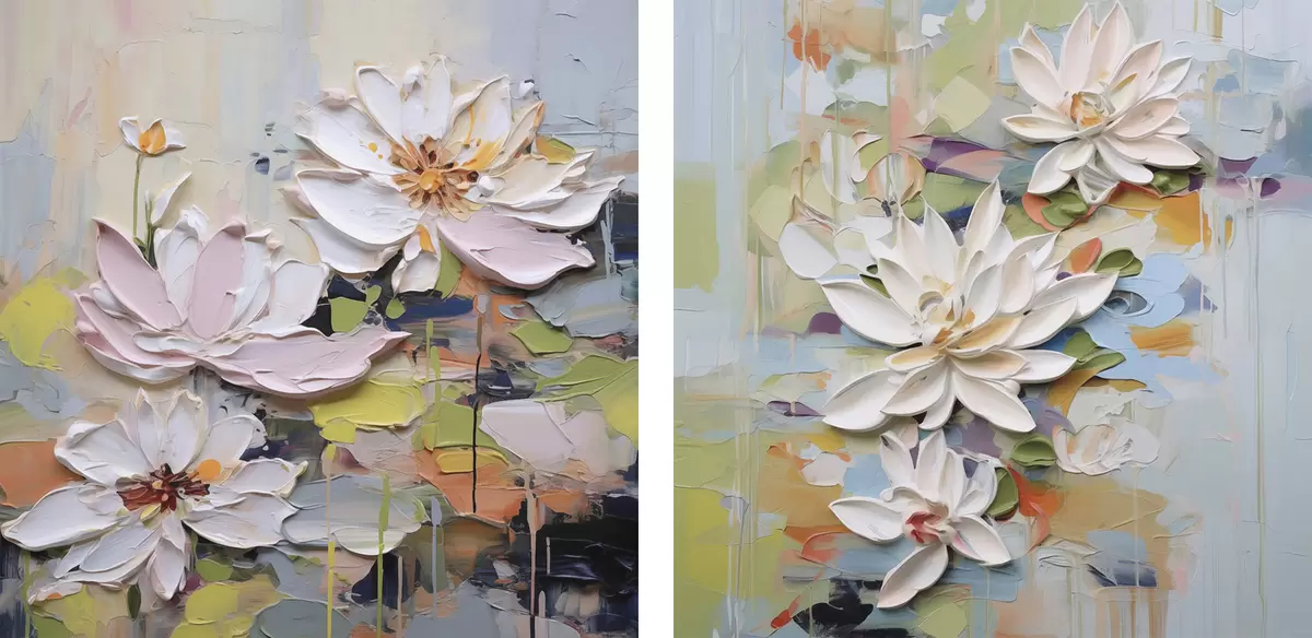Tableau Fleurs de lotus abstraites, peinture imitation m01295