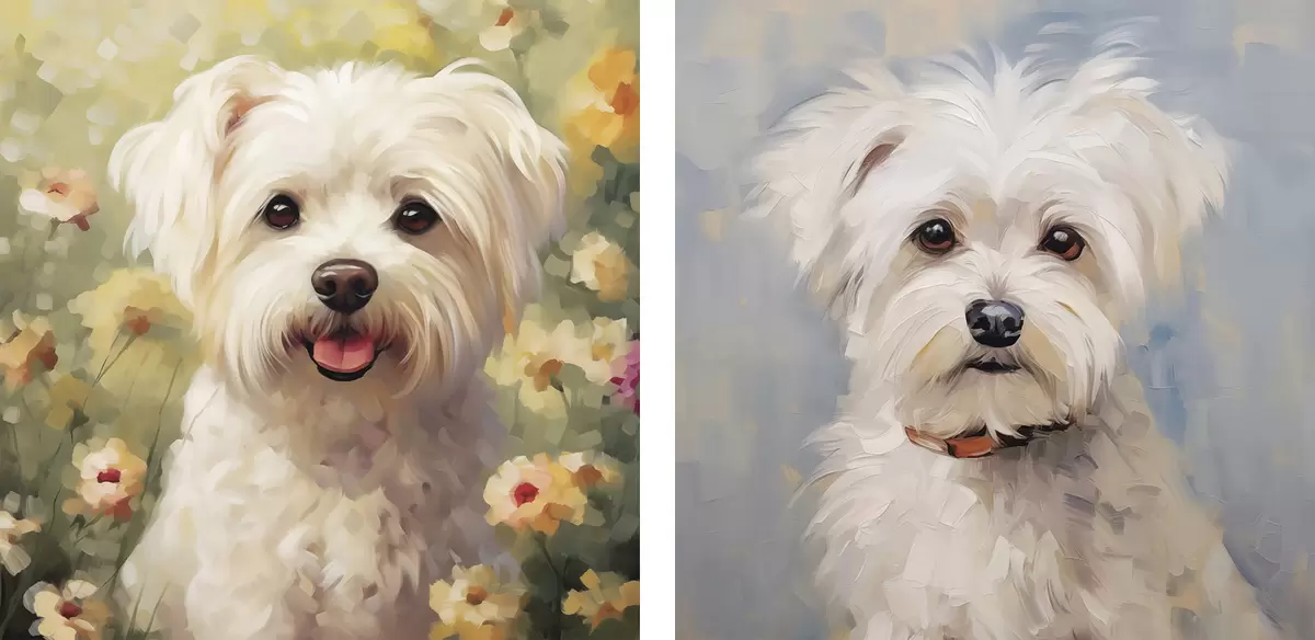 Trois types de matériaux peuvent être commandés : Economic Canvas - matériau dense et durable pour l'impression numérique, identique à la toile de peintre, surface imperméable, reproduction réaliste des détails, matériau à grain moyen. Premium Canvas - la texture ressemble à celle d'une toile de peintre (petits fils entrelacés). Reproduction douce et détaillée de l'image sur une surface mate. Eco-Premium - tissu 100 % coton de haute qualité. Grâce aux fibres naturelles de coton, le matériau est durable et résistant à l'usure. Excellente reproduction des couleurs et des détails.